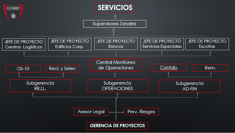 S.S. TARGET, empresa consolidada con más de 15 años de trayectoria, reconocida por ser socios estratégicos de sus clientes entregando soporte y servicios de alta calidad. Especializada en seguridad de activos, mediante procesos de seguridad privada, diseñados según las necesidades del cliente, exigencias del contexto nacional y apego a la normativa legal.