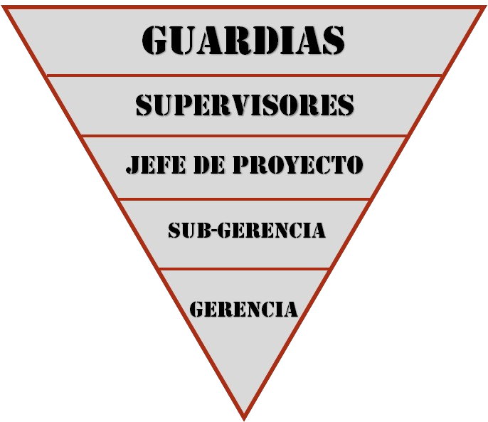 Nuestra organización se basa en el modelo denominado “Pirámide Invertida”, donde la Gerencia se transforma en un facilitador de recursos y estrategias de trabajo para su equipo directo, y a su vez, ese equipo directo realiza lo mismo para con los niveles siguientes y así sucesivamente, hasta lograr que el trabajador final tenga todos los medios necesarios para realizar un trabajo de calidad.